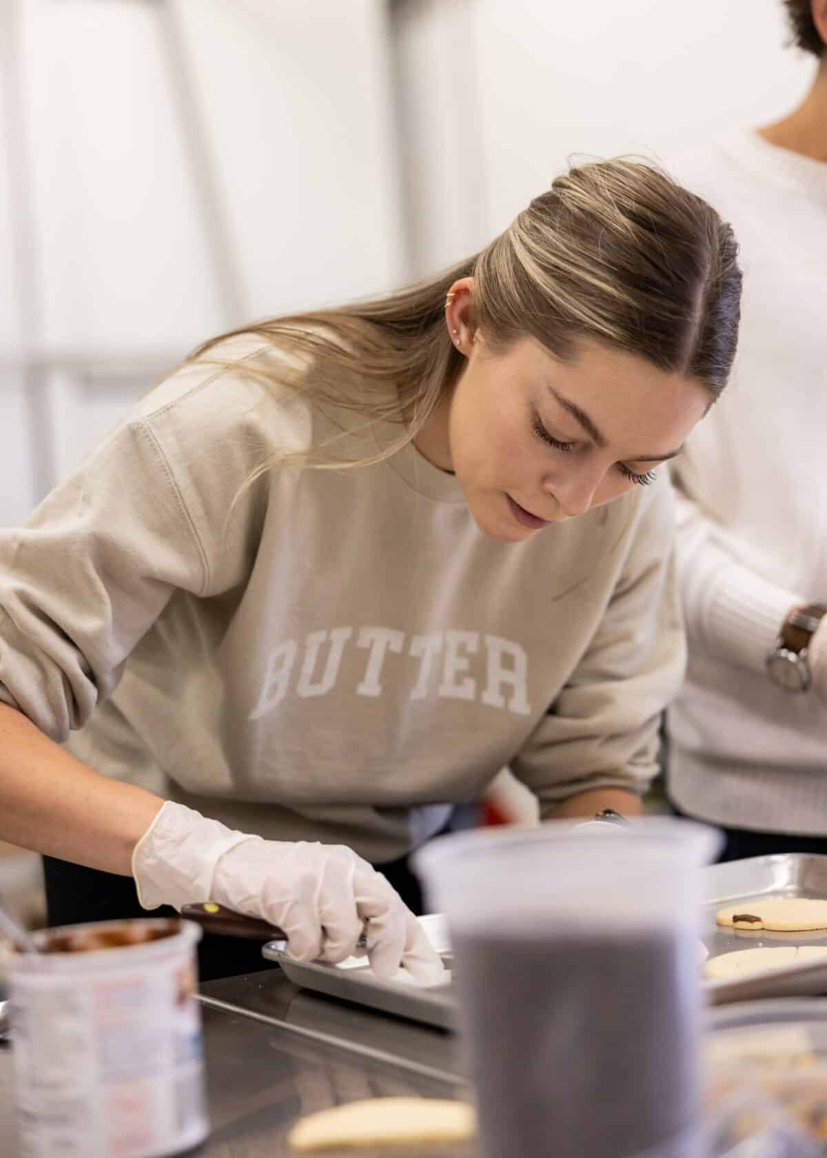 It’s a buzzing hive of activity inside our 18,000-square-foot facility. We moved here in 2023 from a smaller space a few miles down the road. Inside, you’ll find a stainless steel kitchen that looks and acts like a commercial kitchen, but all the equipment and ovens are residential models. We chose this set-up because so much of what we do is for home kitchens, and we want to use measurements and equipment to ensure recipe development is successful in home kitchens.